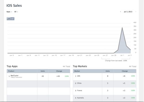 BeeClusterのリリースから3日目です。ダウンロード数のグラフはこのようになっております。 6/30-7/3の合計で523ダウンロード。国別だとアメリカが146でダントツです。日本は36ダウンロードで2位です。このブログで宣伝してはいますが、ブログのアクセス自体…